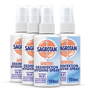 Sagrotan ist seit über 100 Jahren Ihr Experte für hygienische Sauberkeit und den Schutz Ihrer Familie, jeden Tag. Unser Anspruch ist es, einen Beitrag zu einem gesunden Leben zu leisten. Damit Sie sich in Ihrem Zuhause geschützt fühlen und sich sorgenfrei den wichtigen Dingen des Lebens widmen können. Sagrotan ist der Nr. 1* Experte in der Desinfektion, dem Millionen mit der Gesundheit Ihrer Familie vertrauen. Sagrotan Desinfektionsprodukte entfernen 99,9% der Bakterien, Pilze und spezielle Viren. Was zurückbleibt ist hygienische Frische und die Sicherheit, dass alles sorglos sauber ist – ob Zuhause oder Unterwegs. Sagrotan bietet ein breites Sortiment für verschiedene Anwendungsbereiche, in praktischen Formaten. Ihr bewährter Helfer um fit und aktiv zu bleiben, wenn das Leben Sie aufhalten will. Vertrauen Sie dem Schutz von Sagrotan. Das Sagrotan Hygiene-Spray beseitigt 99,9% der Bakterien, Pilze und spezielle Viren in nur 30 Sekunden. Bakterien, die z.B. Durchfallerkrankungen, obere Atemwegsinfektionen, Influenza (A2, H1N1, H5N1), Lungenentzündung oder Herpes, verursachen können werden effektiv entfernt. Sagrotan verstärkt dadurch den Schutz vor Ansteckungen und Krankheiten. Eignet sich dank der kleinen Größe ideal für unterwegs.* Nr. 1 gemäß Umsatzmarktanteil Oberflächendesinfektion nach Nielsen seit 2006
